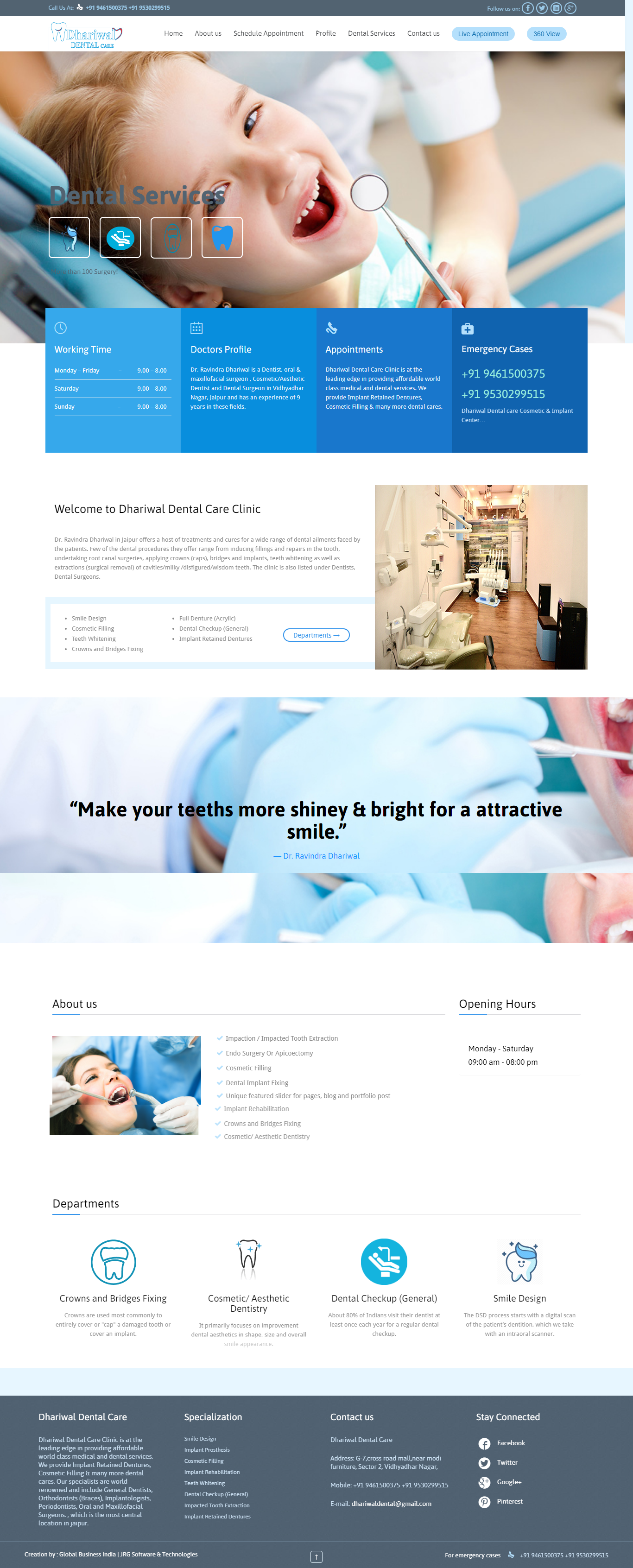 For Dhariwal Dental Care Clinic our development team has created the all designs & made their appointments book according to their schedule online.OUR Implementation