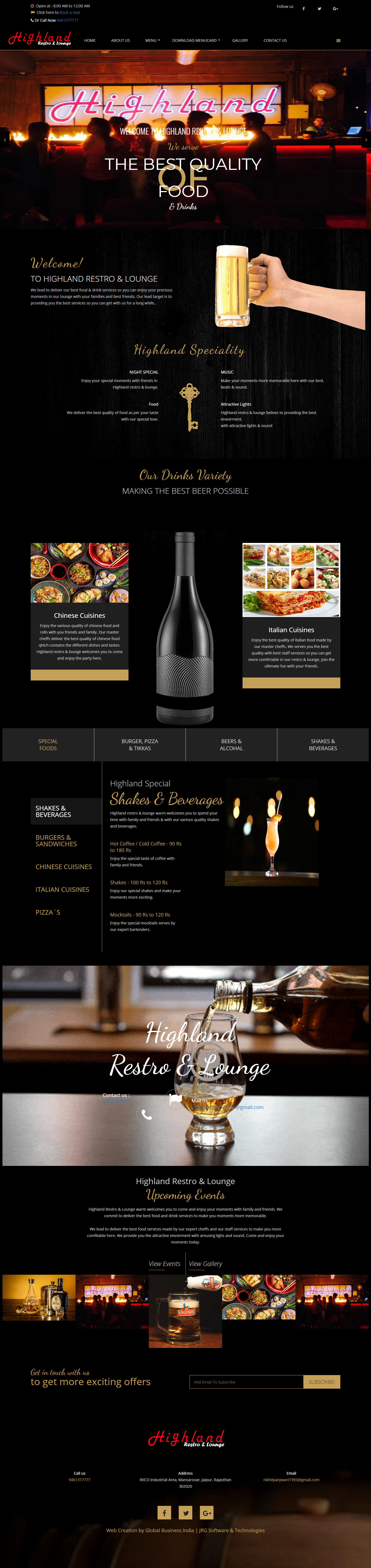 We initiated our development & designers team to implement the best possibility for travel guide of Highland Restro & Lounge, Jaipur. Our team has made complete design & made a complete dynamic website which have all information of their booking easy so anyone can book their table for their parties & family celebrations.