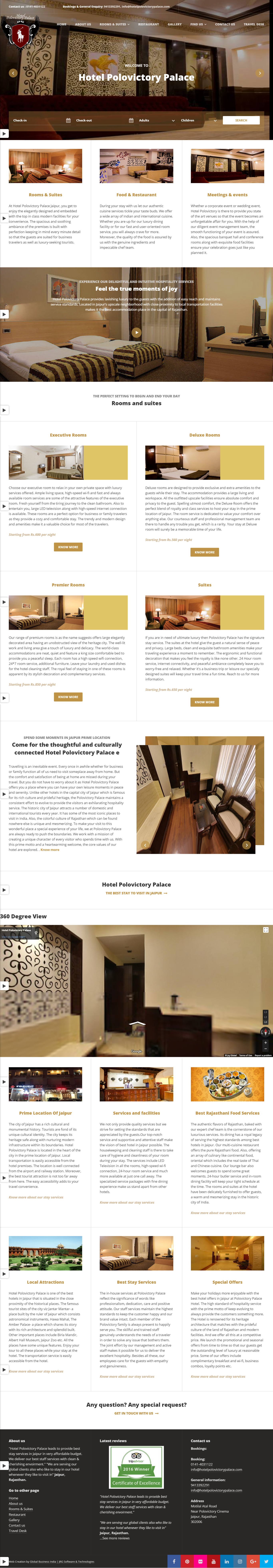 We initiated our development & designers team to implement the best possibility for travel guide of Hotel Polovictory Palace located in Jaipur. Our team has made complete design & made a complete dynamic website which have all information of their booking system online to book rooms in their resort and pure food services in jaipur.