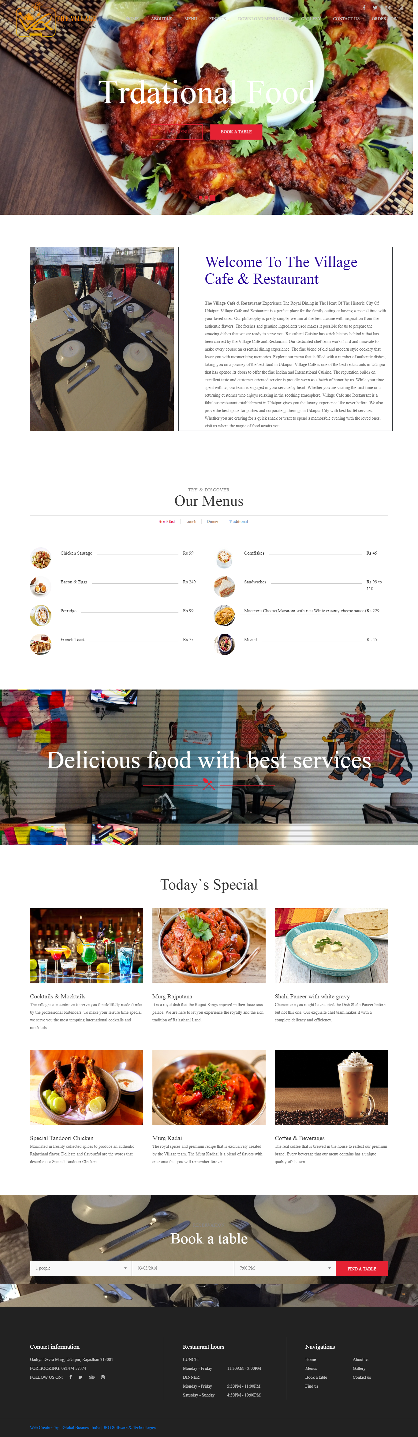 For The Village Cafe & Restaurant our development team has created the all designs & made their online bookings so anyone can easily book their tables for any events or celebration at The village Cafe Restaurant.OUR Implementation